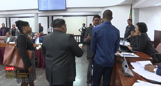 Asiskumar Gajadien (VHP), Patricia Etnel (NPS), Carl Breeveld (DOE) en Marlon Budike (NPS) hebben een dringend beroep gedaan op Assembleevoorzitter Jennifer Geerlings-Simons om de behandeling te verdagen. Zij voerden aan dat de nota van wijziging met zulke ingrijpende bepalingen nader bestudeerd moeten worden. Er is volgens hen een compleet nieuwe wet ingediend. Gajadien zei dat “stakeholders compleet misleid zijn”. Volgens hem is deze wet bedoeld om het valutaverkeer te doen ophouden. Volgens hem is er een parlementaire coup gepleegd. Etnel zei dat er alleen chaos gecreëerd wordt met deze wet. De koers zal hierdoor niet omlaag gebracht worden, voerde Breeveld aan. Er is geen sprake van meedenken, meedoen en meebeslissen. Budike zei dat hij niet kan meewerken aan deze wet, want hij is geconvoceerd voor behandeling van een andere wet. Simons bracht het voorstel van verdaging van de vergadering in stemming. Dit werd afgestemd met 25 tegen en 6 vóór en zij waste haar hand in onschuld. “Het parlement heeft gezegd dat wij moeten doorgaan”, stelde ze.