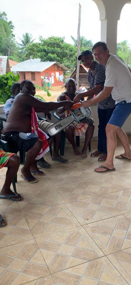 De VHP is haar belofte nagekomen door een kettingzaag te doneren aan de dorpsgemeenschap van Misiakriki om een nieuwe verbindings weg aan te leggen tussen 2 dorpen.