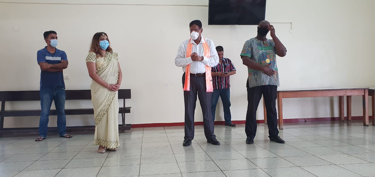 Donatie aan kinder tehuis Arya Dewaker ivm hindoestaanse immigratie door VZ van de VHP Chan Santokhi en Vz van de Abop Ronny Brunswijk.