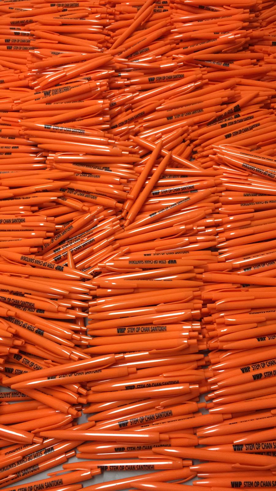 In opdracht van Ravish Isrie die een donateur en familieleden bereid heeft gevonden dit te financieren, heeft Tina Jakoeb 35000 Pennen laten bedrukken voor de campagne in Suriname waarvan: