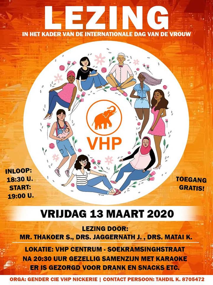 I.v.m. de Internationale dag van de Vrouw heeft de Gendercommissie VHP Nickerie op vrijdag 13 maart jl. een lezing gehouden in VHP Partijcentrum in Nickerie. De sprekers waren Mr. Thakoer S. (advocaat) en Drs. Matai K. ( huisarts).