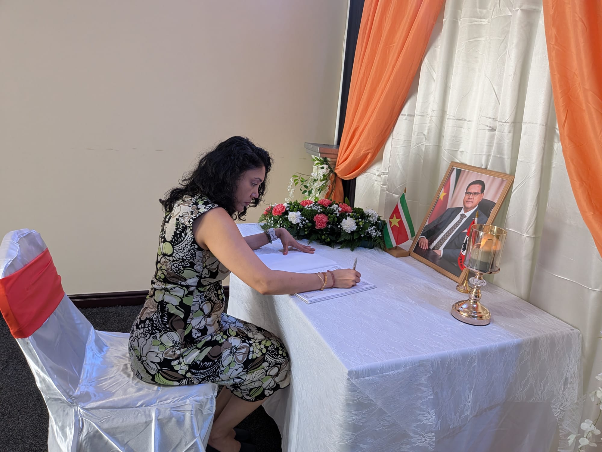 “Namens de afdeling VHP Nederland, als onderdeel van de moederpartij, heb ik het condoleanceregister getekend. Een moment van bezinning, respect en verbondenheid. Oud President Chan Santokhi heeft voor velen een blijvende betekenis, ook voor Surinamers in het buitenland.”