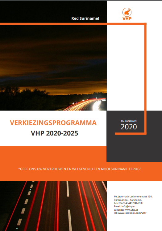 De VHP heeft tijdens de viering van haar 71ste verjaardag haar verkiezingsprogramma 2020 gelanceerd. Tijdens een massameeting met meer dan 20.000 mensen werd het programma aan voorzitter Chan Santokhi aangeboden door dr. Riad Nurmohamed, die het team leidde dat het programma heeft geschreven.